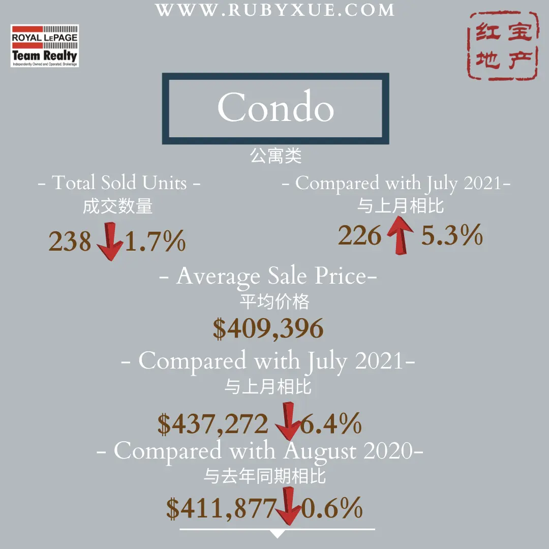 “Supply continues to remain scarce, and that is the driving factor behind these price increases. New listings were down 400 units from July and 500 units from last August and below the 5-year average for the first time this year since February. Although inventory is approximately 5-6% higher than last year for both residential and condominium property classes, we are only at about 1.5 months’ worth of housing stock. To achieve a balanced market, we need 4-6.5 months’ supply of inventory,” Wright points out.