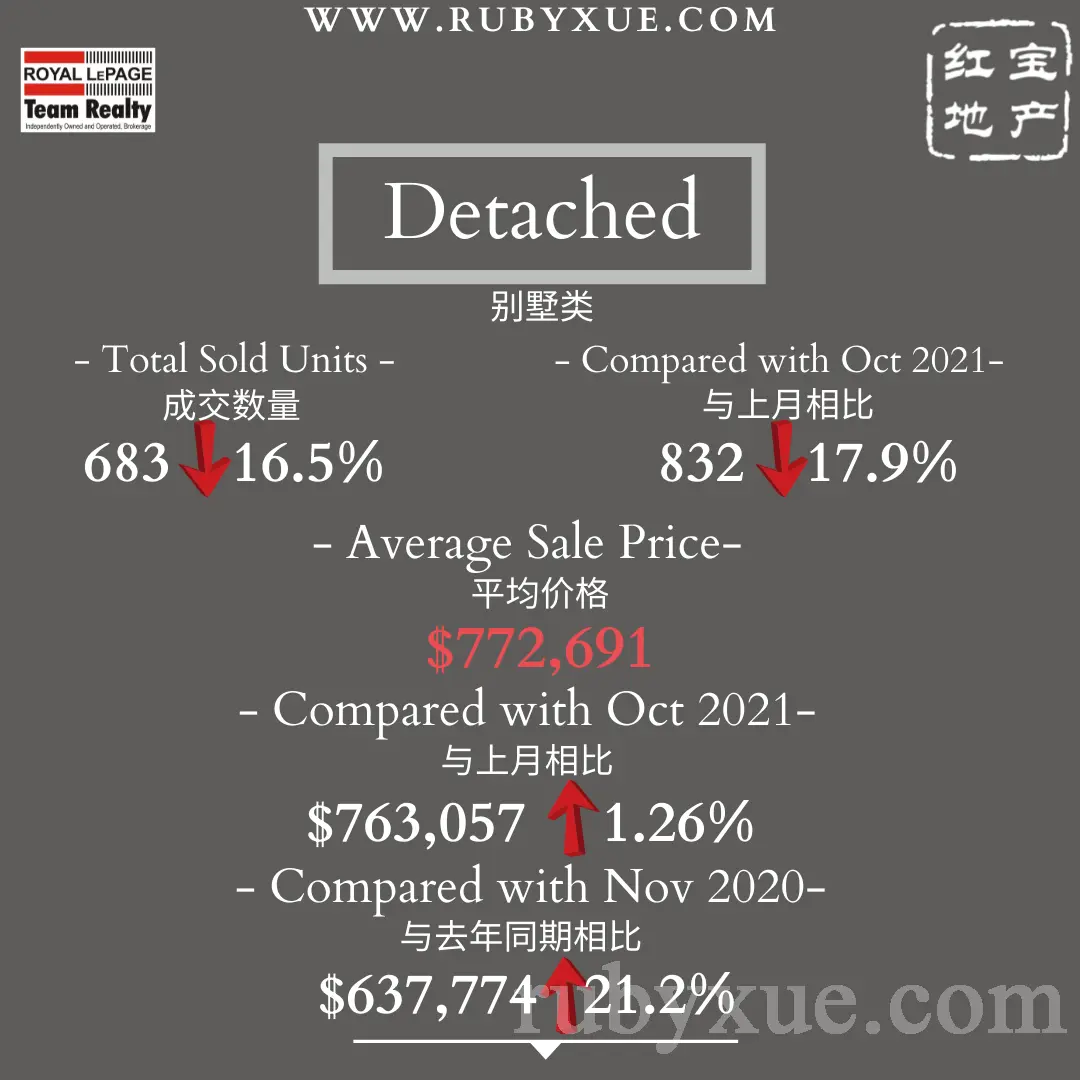 “Despite significant increases in average prices over November 2020, month-to-month price accelerations have tapered off slightly, with average prices for residential units on par with October’s and condo average prices increasing by 7%. This is a far better situation than the monthly price escalations we had seen in the first quarter of 2021,” suggests Wright. “However, there is no question that supply constraints will continue to place upward pressure on prices until that is remedied.”