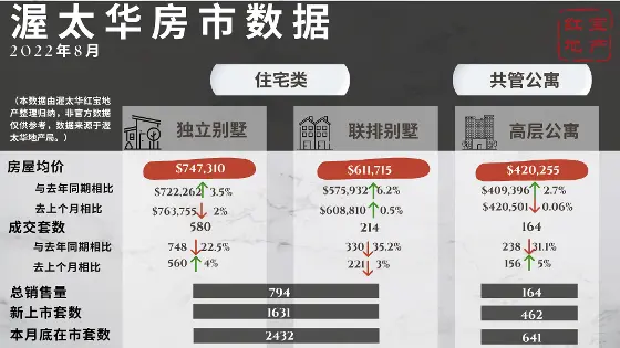 8月份公寓类房产的平均售价为$421,966,比2021年增长了4%。住宅类房产的平均售价为$707,712,比一年前增长了5%。今年迄今为止,住宅的平均售价为$795,978,公寓的平均售价为$457,771,这些价值分别比2021年增长了10%和9%。