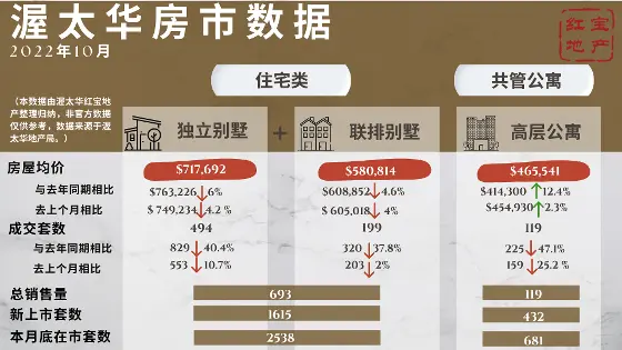从数字上看--平均价格。10月份公寓类房产的平均售价为$445,691,比2021年增长了9%。住宅类房产的平均售价为$677,873,比一年前下降了5%。