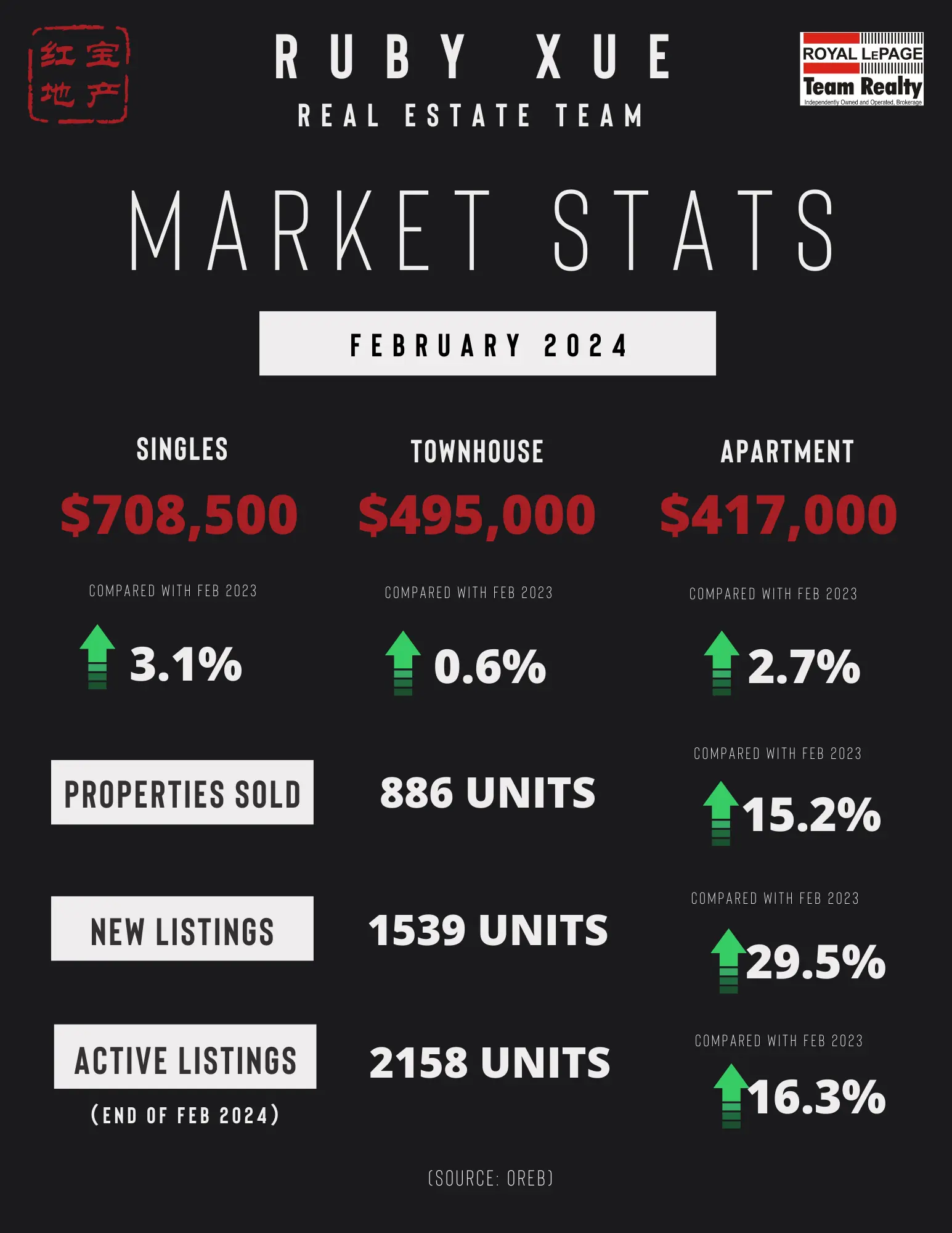 OREB警告说,平均销售价格可以用来确定一段时间内的趋势,但不应作为特定属性价值增加或减少的指标。平均销售价格的计算基于所有销售房产的总金额。价格会因社区而异。